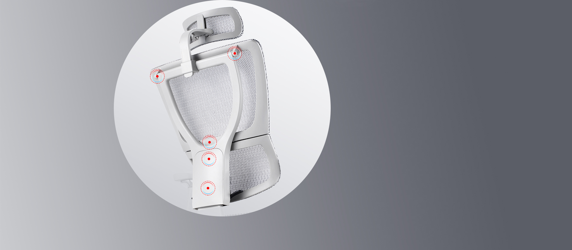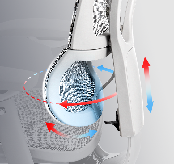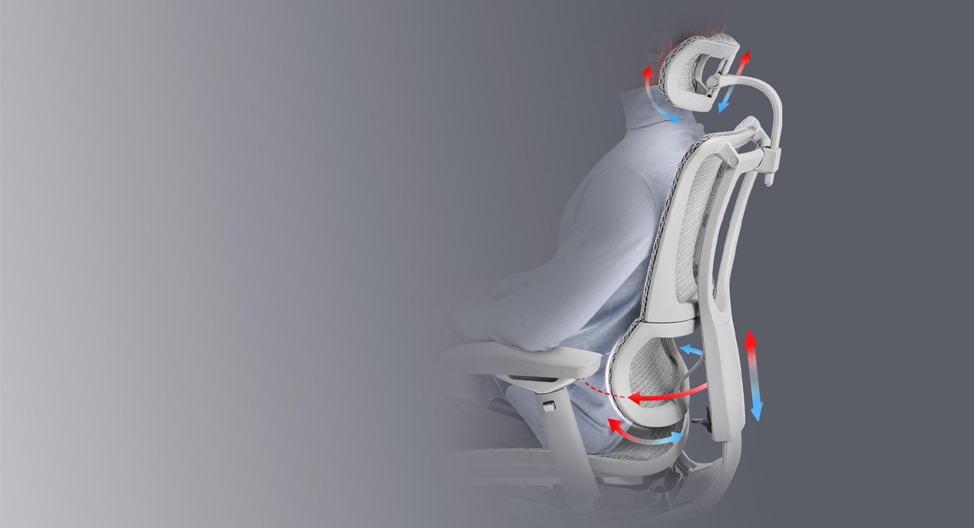 连动贴合支撑,随腰背移动而移动;后仰时自动提供即时平衡
